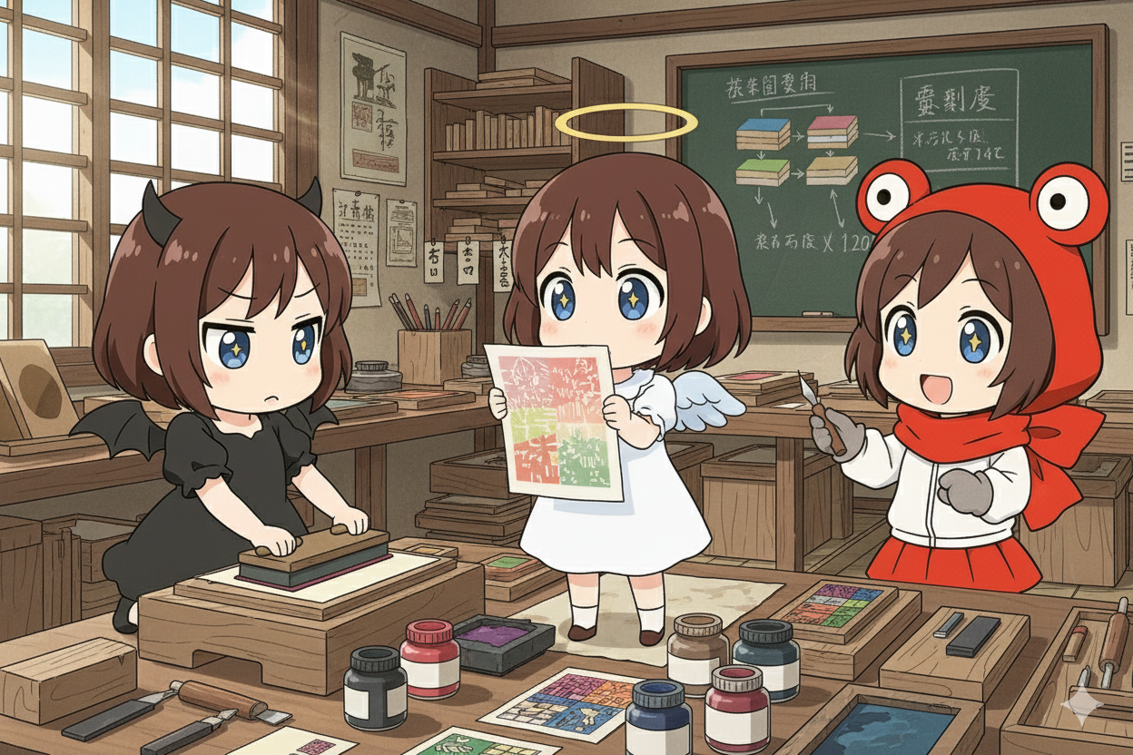 版画は、見た目の美しさだけでなく、道具や技法に込められた職人の工夫や想いを知ることで、より深く楽しめます。どんな素材が使われ、どんな手順で生まれたのか――その背景に目を向けると、作品の奥行きが一気に広がります。