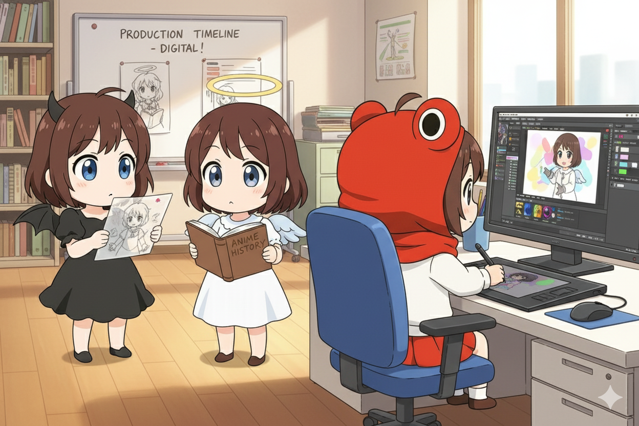 デジタル化によって作業効率が格段に上がり、色彩表現の幅も広がりました。さらに海外との共同制作や短納期の仕事にも対応しやすくなり、アニメ制作の現場は大きく変化していきました。