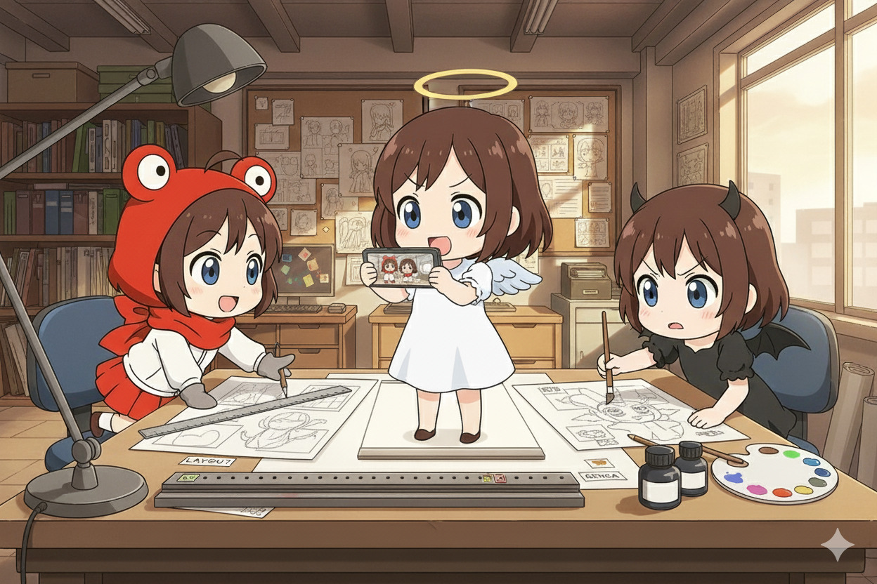 「原画」「動画」「レイアウト」は、それぞれ異なる役割を持ちながら協力し合う存在です。